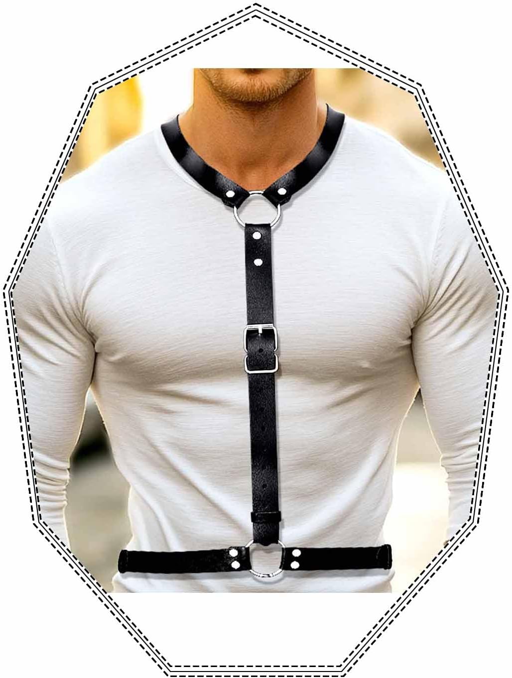 Fstrend Men's Black Faux Leather Chest Harness Strap, Adjustable Waist Belt for Rave, Festival, Cosplay, Fashion Accessories