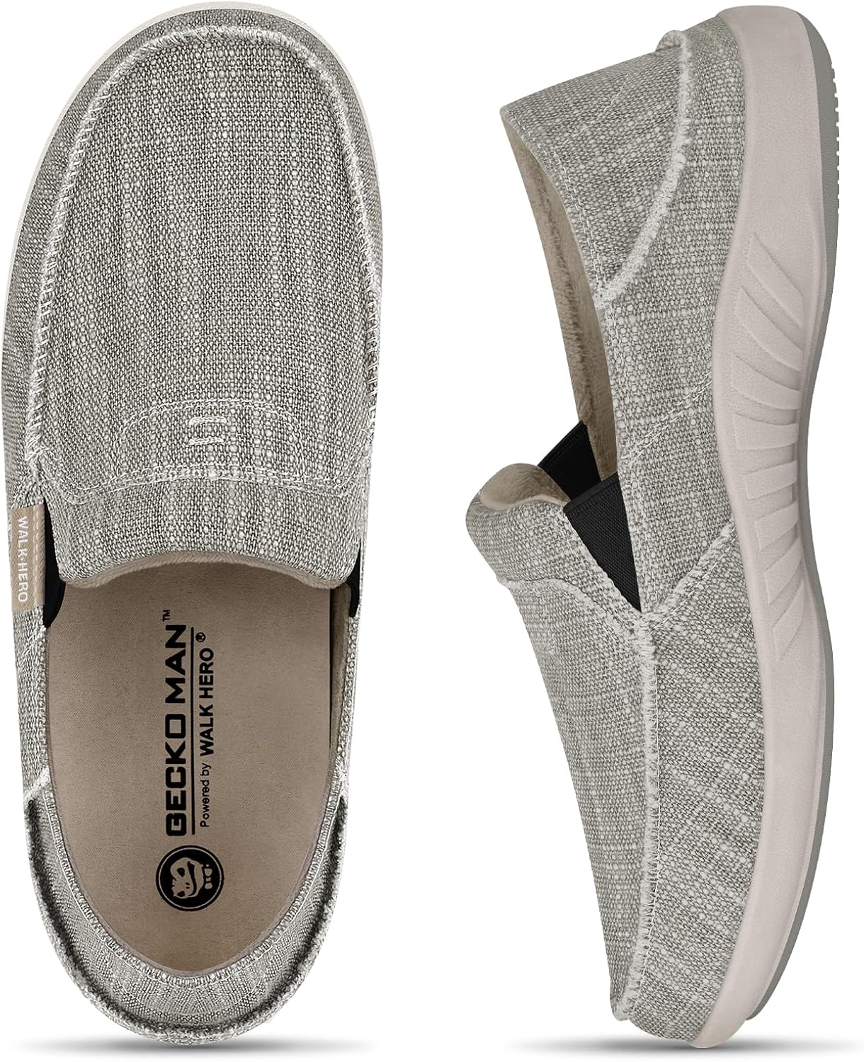 Mens Slip On Shoes, Canvas Mens Loafers with Arch Support, Orthopedic Mens Boat Shoes for Plantar Fasciitis, Indoor & Outdoor Walking Slippers Shoes for Pain Relief