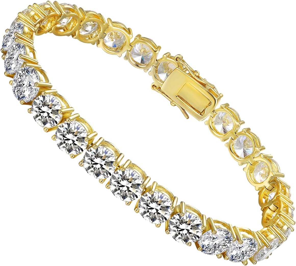 Tennis Bracelet for Women|5MM Simulate Diamond Bracelets|4-Prong-Setting CZ|18k Yellow Gold Plated