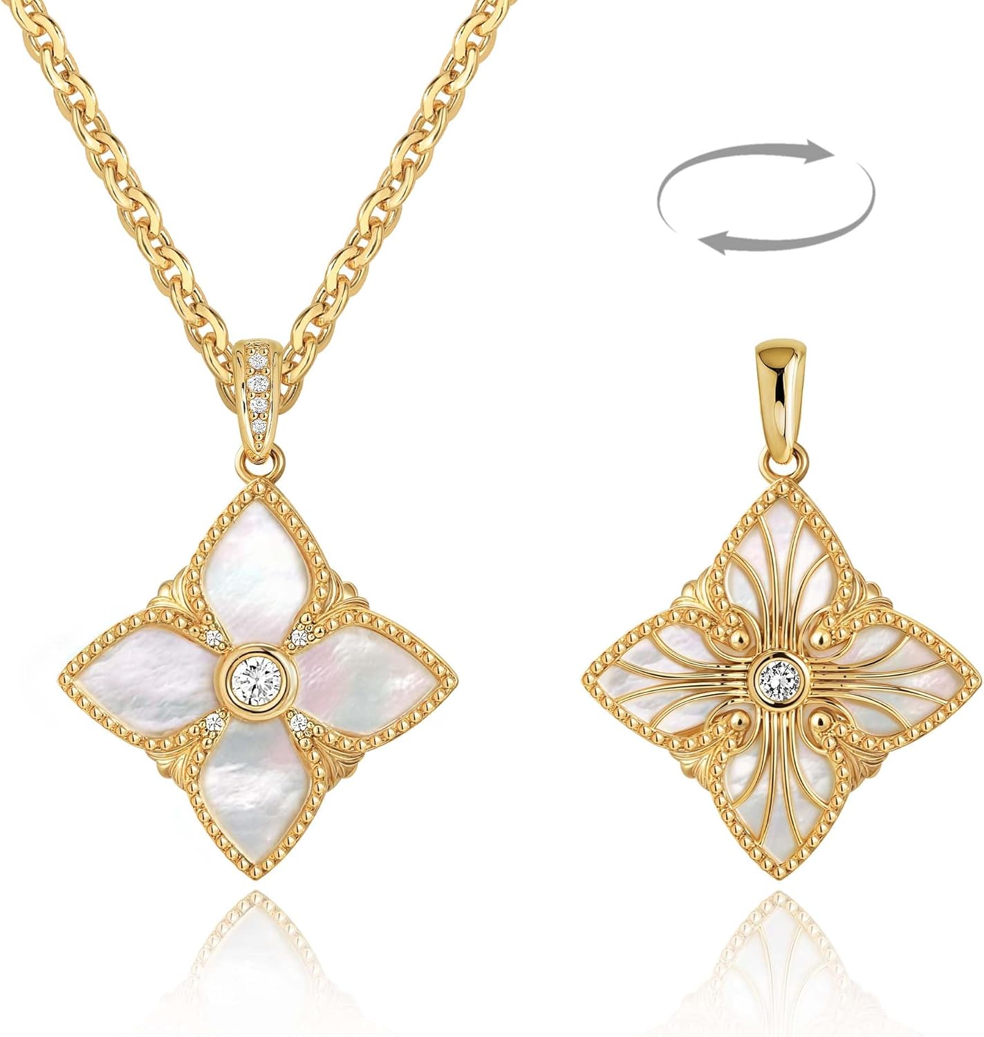 MTMY Clover Necklace for Women 14K Gold Plated Four Leaf Clover Pendant Necklace Thick Gold Double Sided Lucky Charm Jewelry