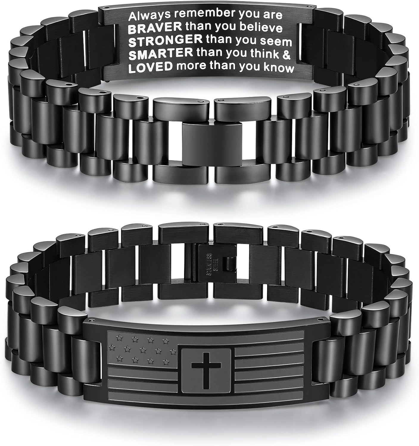 TONY & SANDY Valentines Day Gifts for Him, Christian Gifts for Men, American Flag Cross Bracelet, Stainless Steel Bible Verse Jewelry Birthday Baptism Christmas Easter Gifts