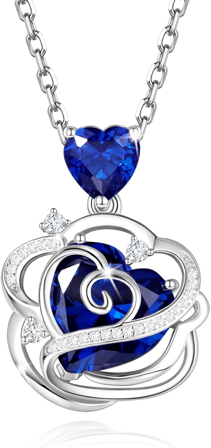 FANCIME Valentines Day Gift Thornless Pulse Heart Birthstone Necklace for Women Sterling Silver Rose Pendant Fine Jewelry Gemstone Birthday Gifts for Wife Her