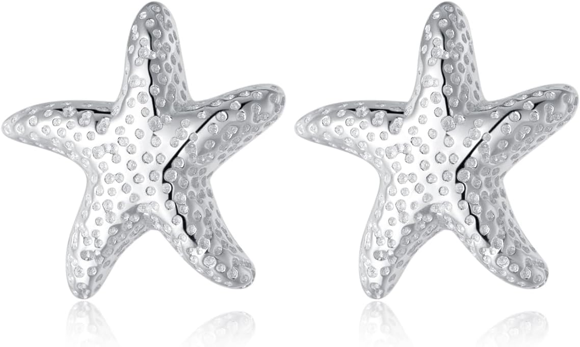 Reffeer Solid 925 Sterling Silver Starfish Stud Earrings for Women Teen Girls Beach Stud Earrings Sea Fish Earrings