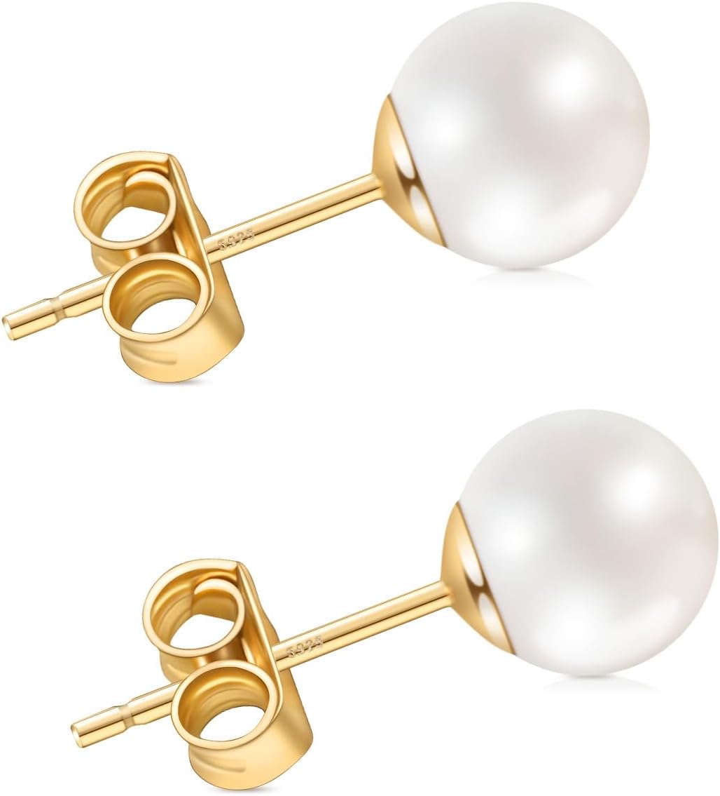 Pearl Stud Earrings for Women, Handpicked Freshwater Pearl Hypoallergenic Silver Post Earring Studs