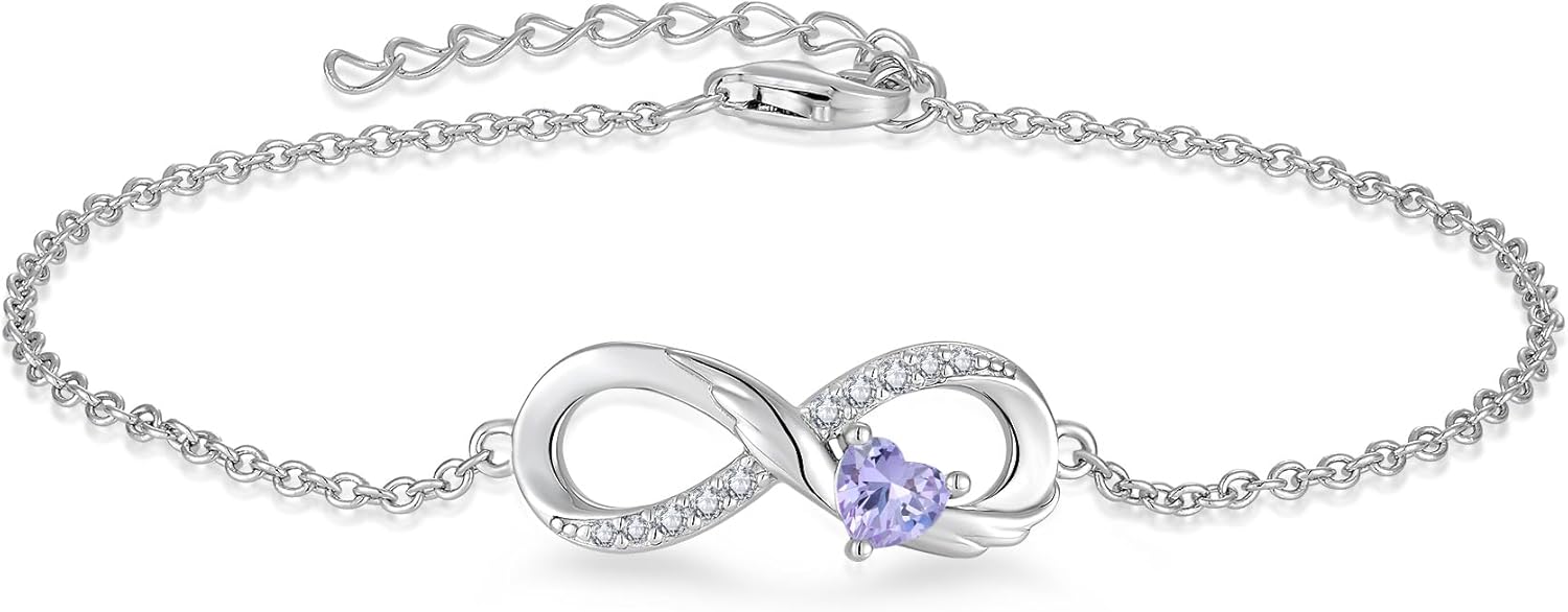 STARCHENIE 925 Sterling Silver Infinity Bracelet Adjustable Angel Wings Heart Birthstone Bracelet for Women
