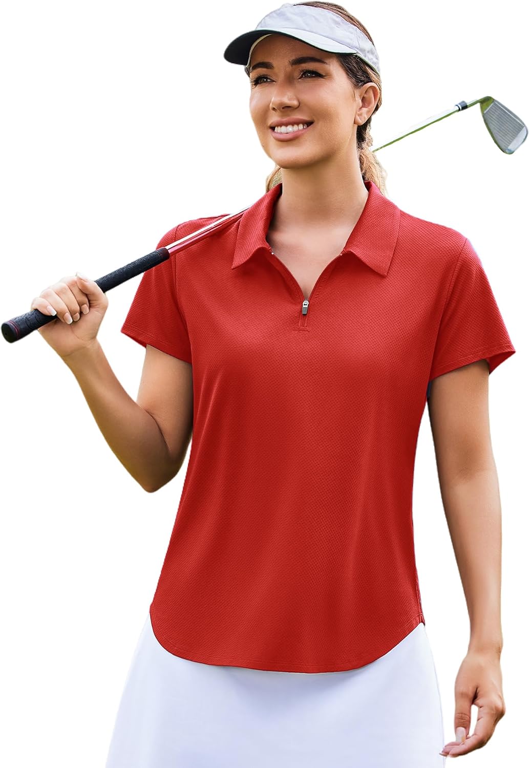 PINSPARK Womens Golf Shirt Short Sleeve UPF 50+ Tennis Polo Shirts 1/4 Zip Up Collared Quick Dry Athletic Pickleball Shirt