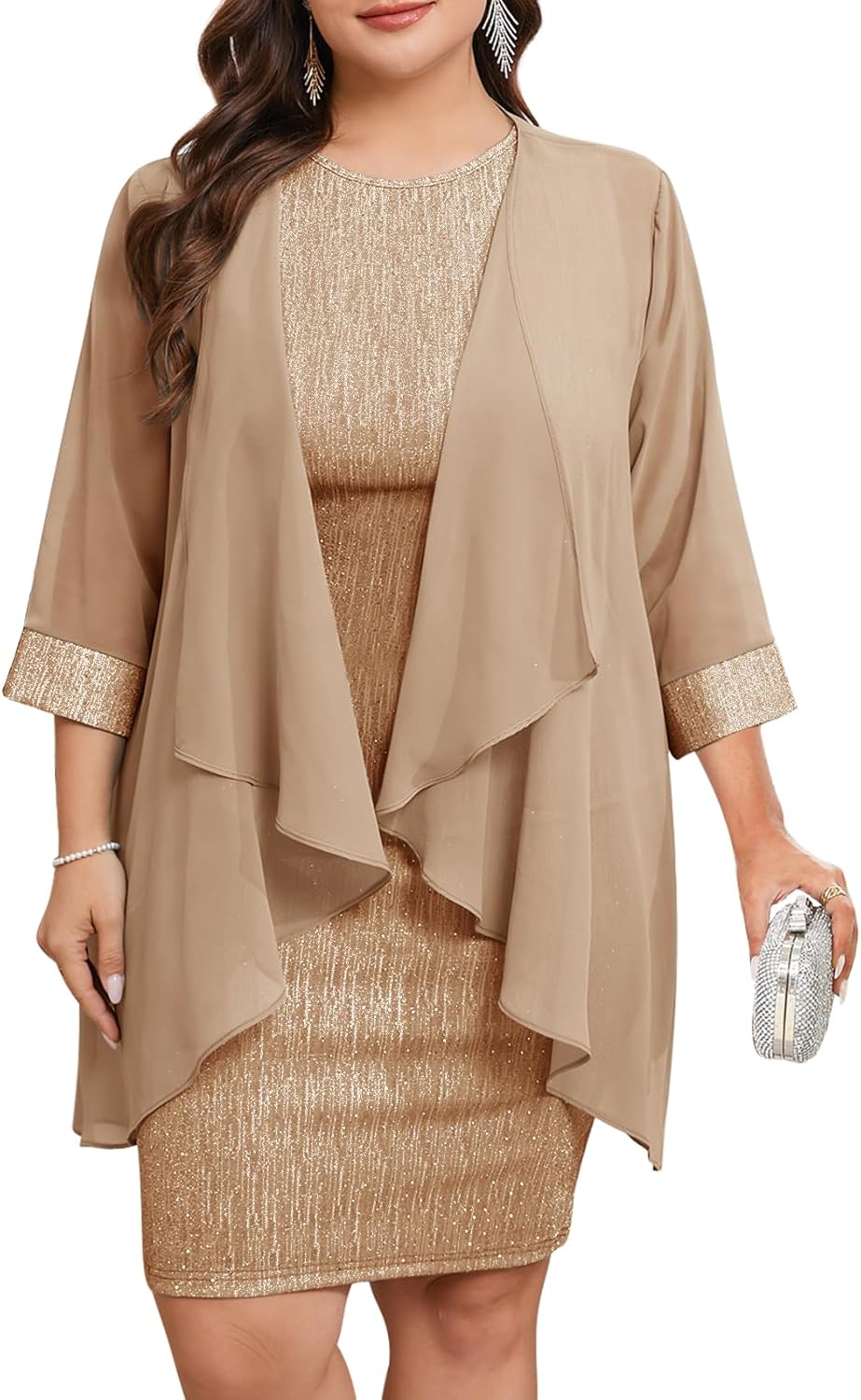 ZOMVA Plus Size Sparkly Formal Dress Suit 2 Piece Mother of The Bride Groom Chiffon Jacket Outfit Cocktail Evening