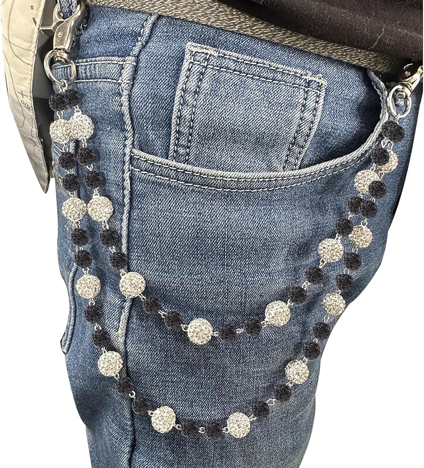 Sparkly Ceramic Beads Wallet Chain - 10mm Shiny Bohemian Purse Jean Pants Chains for Men Women Fashion Accessories