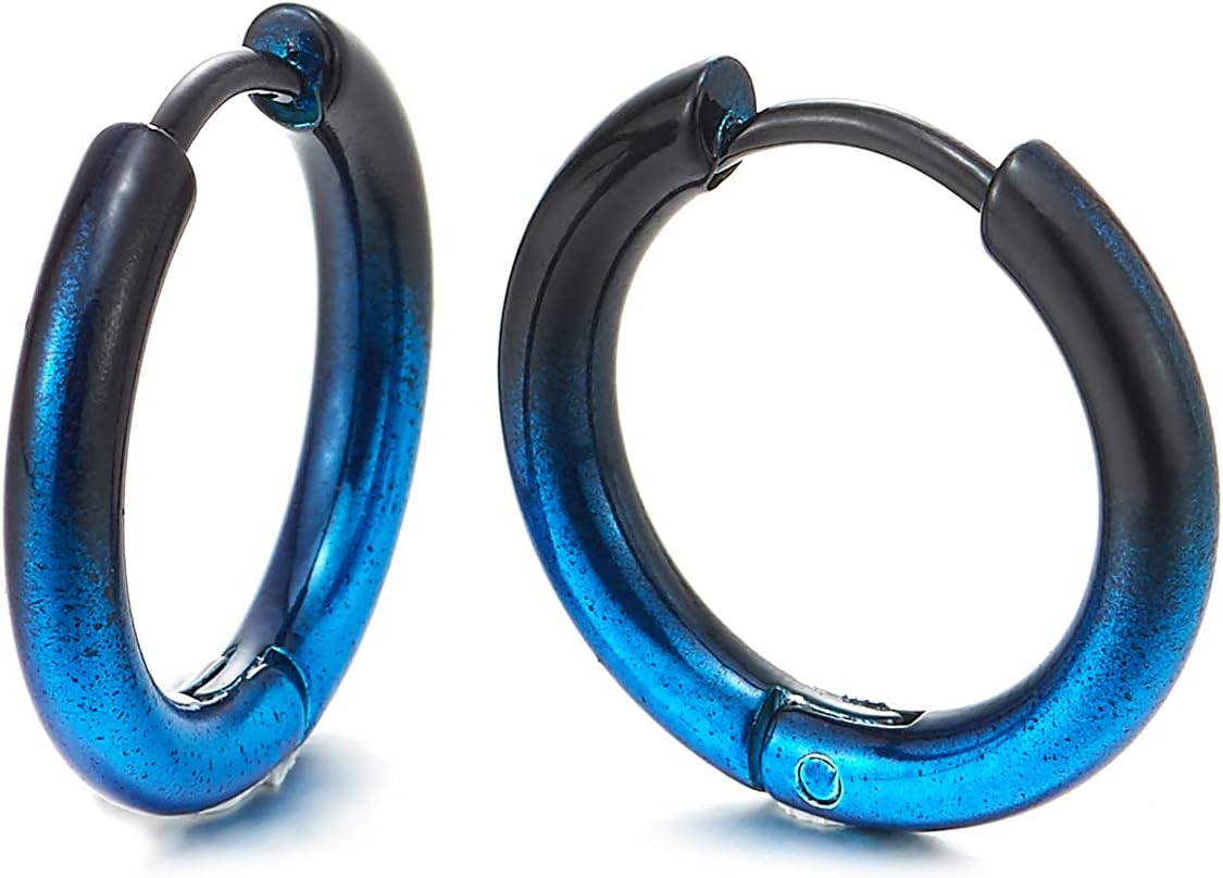 Pair Stainless Steel Oxidized Plain Circle Huggie Hinged Hoop Earrings for Men Women