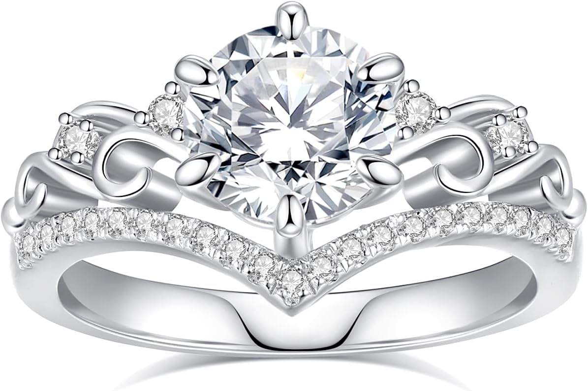 Moissanite Engagement Rings for Women Wedding Band D Color VVS1 Round Cut 925 Sterling Silver 18K White Gold Plated Promise Ring