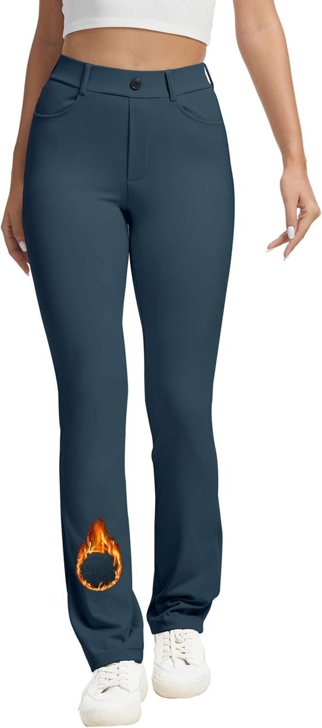 VIMPEP Women’s Fleece Lined Dress Pants Stretchy High Rise Straight Leg with Pockets Yoga Work for Cold Weather 1203