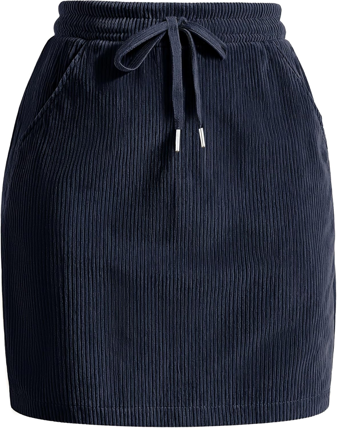 Casly Lamiit Women's Mini Corduroy Skirt 2025 High Waisted Drawstring Fall Winter Pencil Skirts with Pockets for Work Casual