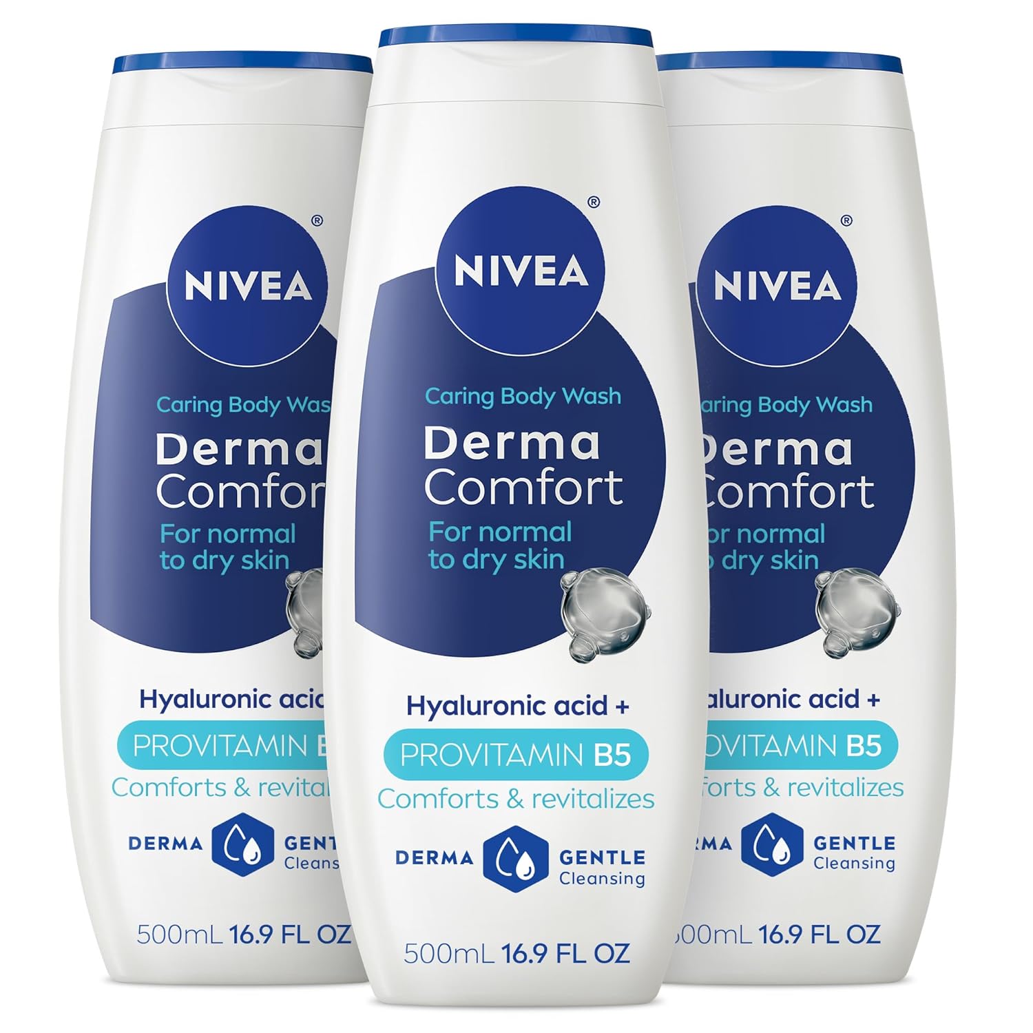 - INCLUDES: Three 16.9 fluid ounce bottles of NIVEA Derma Comfort Caring Body Wash for Normal to Dry Skin