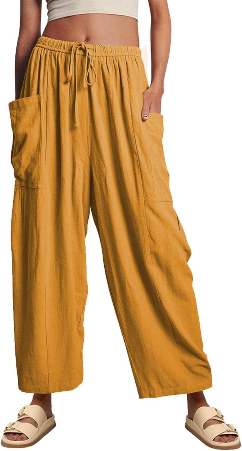 LIZALIG Women's Summer Wide Leg Pants Casual Soft Loose Fit Beach Vacation Pants with Pockets for Daily Wear