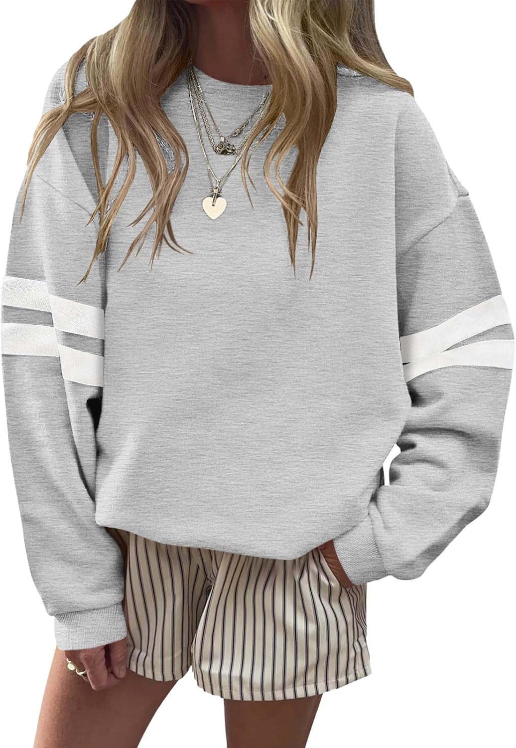 TICTICMIMI Women's Fleece Crewneck Sweatshirts Oversized Striped Long Sleeve Tops Fall Clothes