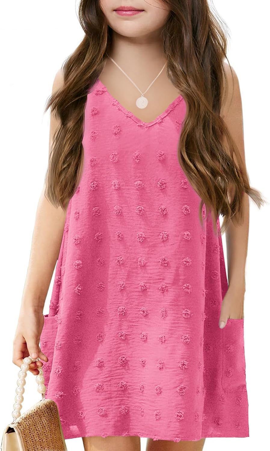 Batermoon Girls Swim Cover Up Swiss Polka Dot Summer Beach Dress V Neck Boho Cute Dresses with Pockets 4-14 Years