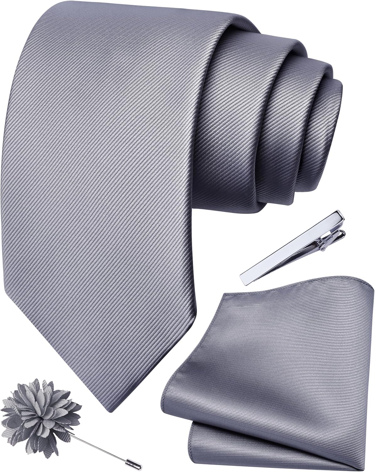 Branduce 3.15"(8cm) Solid Formal Tie and Pocket Square Plain Necktie Lapel Pin and Tie Clip Set for Men