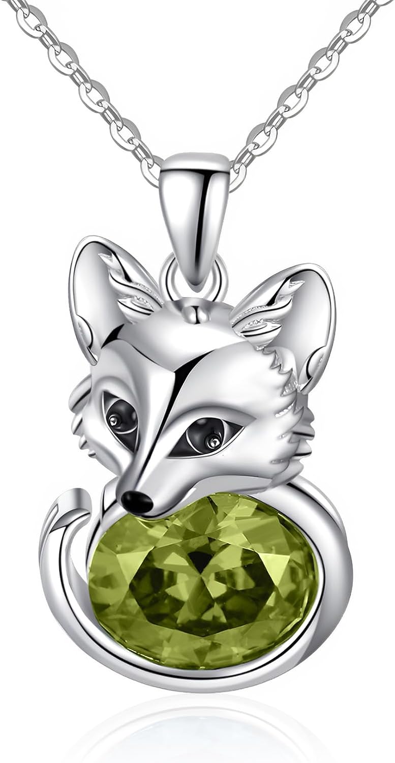 Fox Necklace Sterling Silver Cute Animal Pendant January Garnet Birthstone Jewelry Gifts for Women