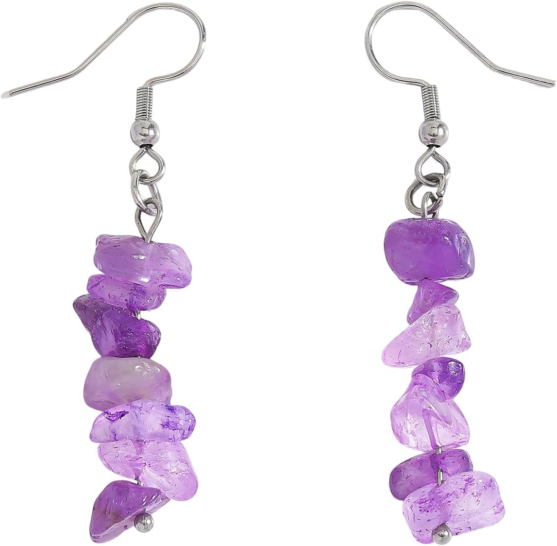 Beaded Natural Stone Earrings for Women, Raw Irregular Natural Stone Dangle Earring, Healing Crystal Energy Jewelry Gift