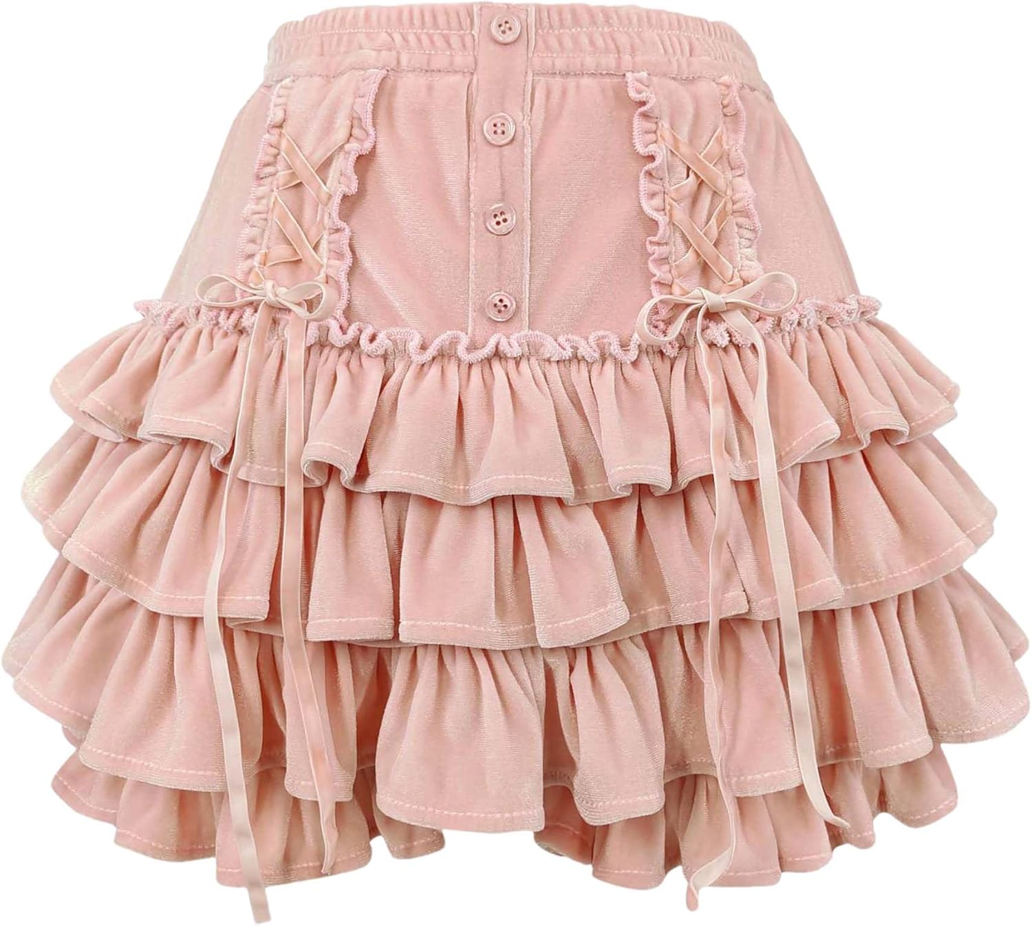 Women Tiered Ruffle Mini Skirt Teens Skater Lolita Frilly High Waisted Tennis Skort A Line Velvet Cute Skirts