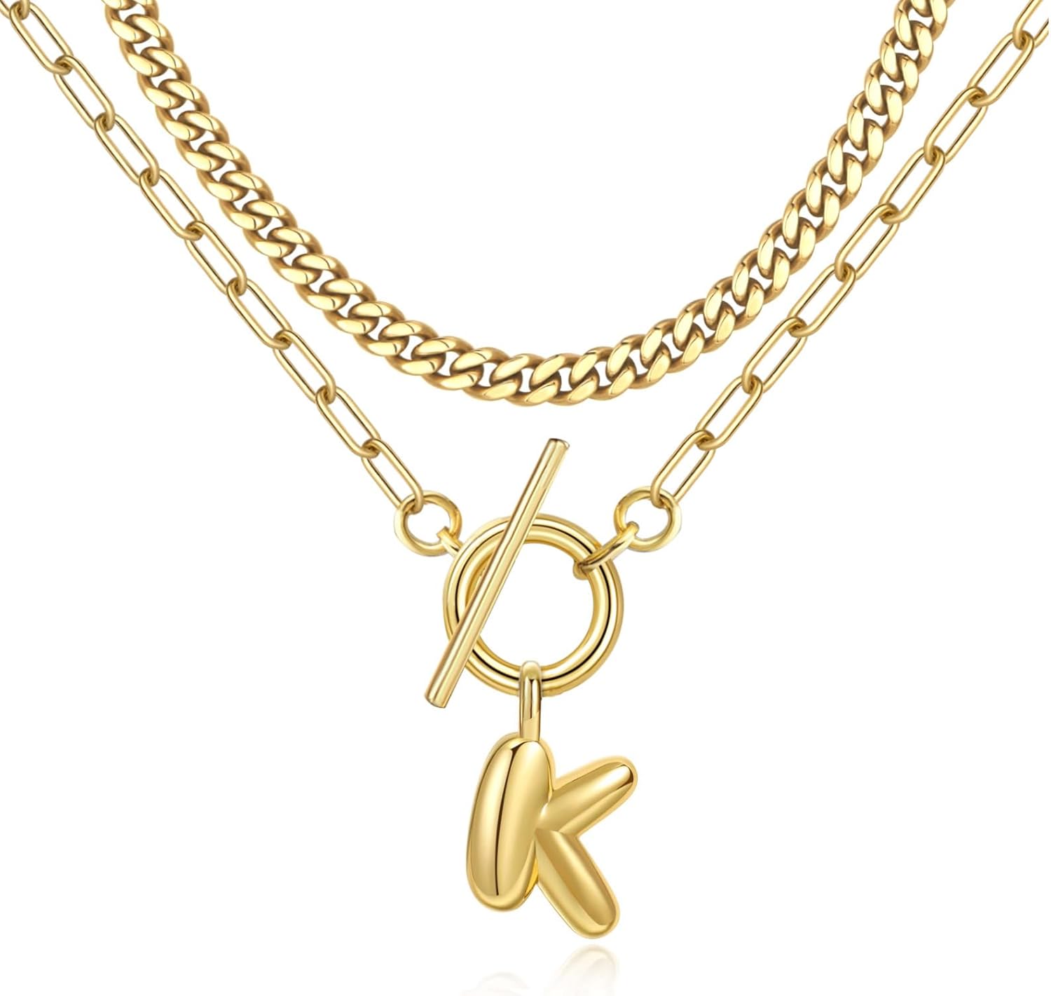 Bubble Gold Letter Necklace Layered Initial Necklaces for Women Dainty Cuban Chain Choker Necklace 14K Gold Plated Letter Necklace Personalized Name Necklace Cute Jewelry Gifts
