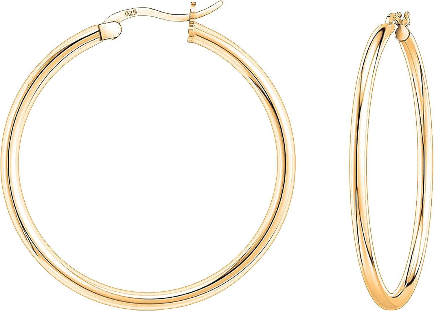 Savlano 925 Sterling Silver Round Hoop Earrings – 18K Gold Plated Hoop Earrings for Women & Men Comes in 30MM-80MM with a Gift Box