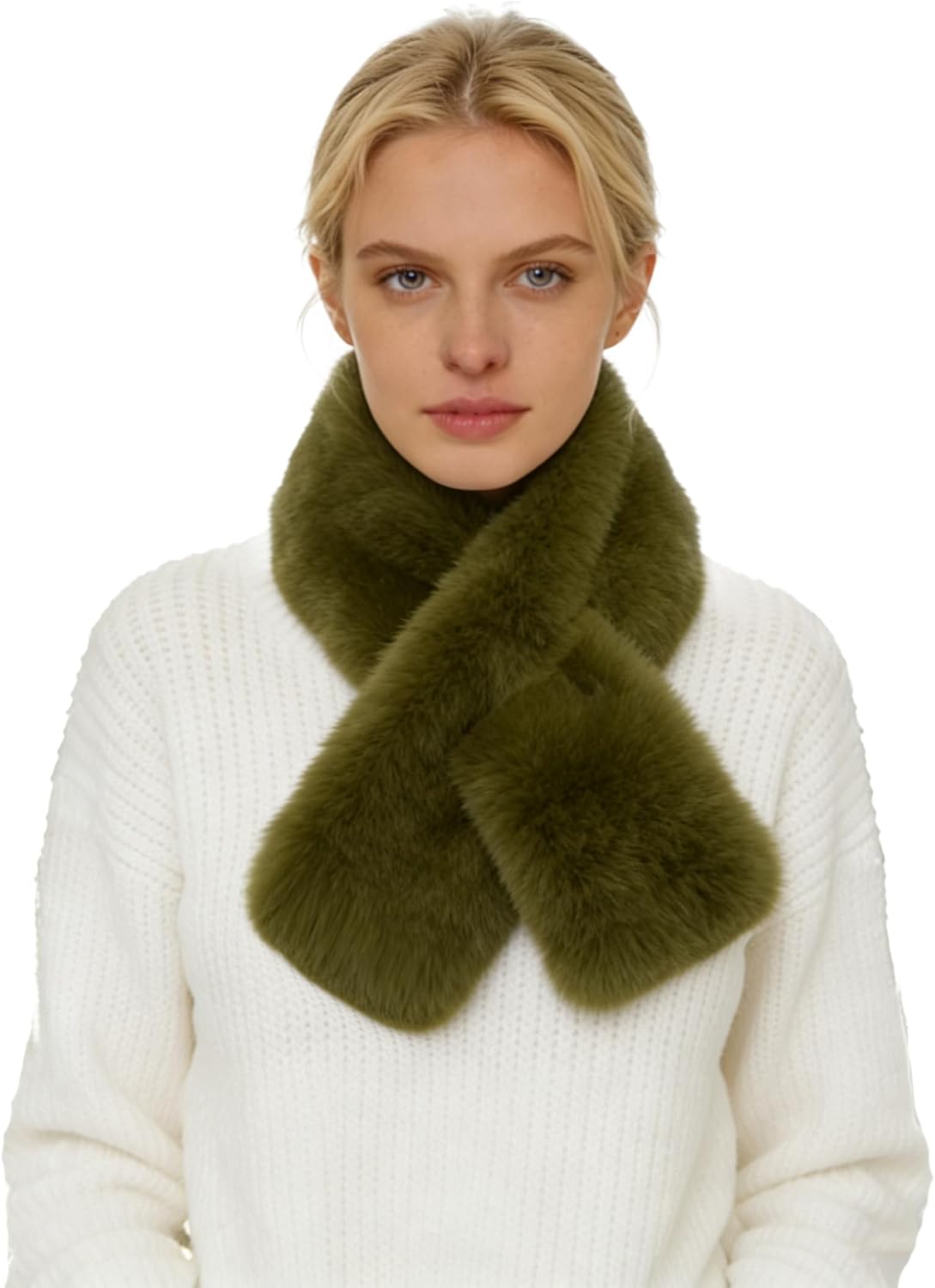Lina & Lily Faux Fur Pull-Through Women's Winter Collar Scarf Neck Warmer Rectangle Fluffy