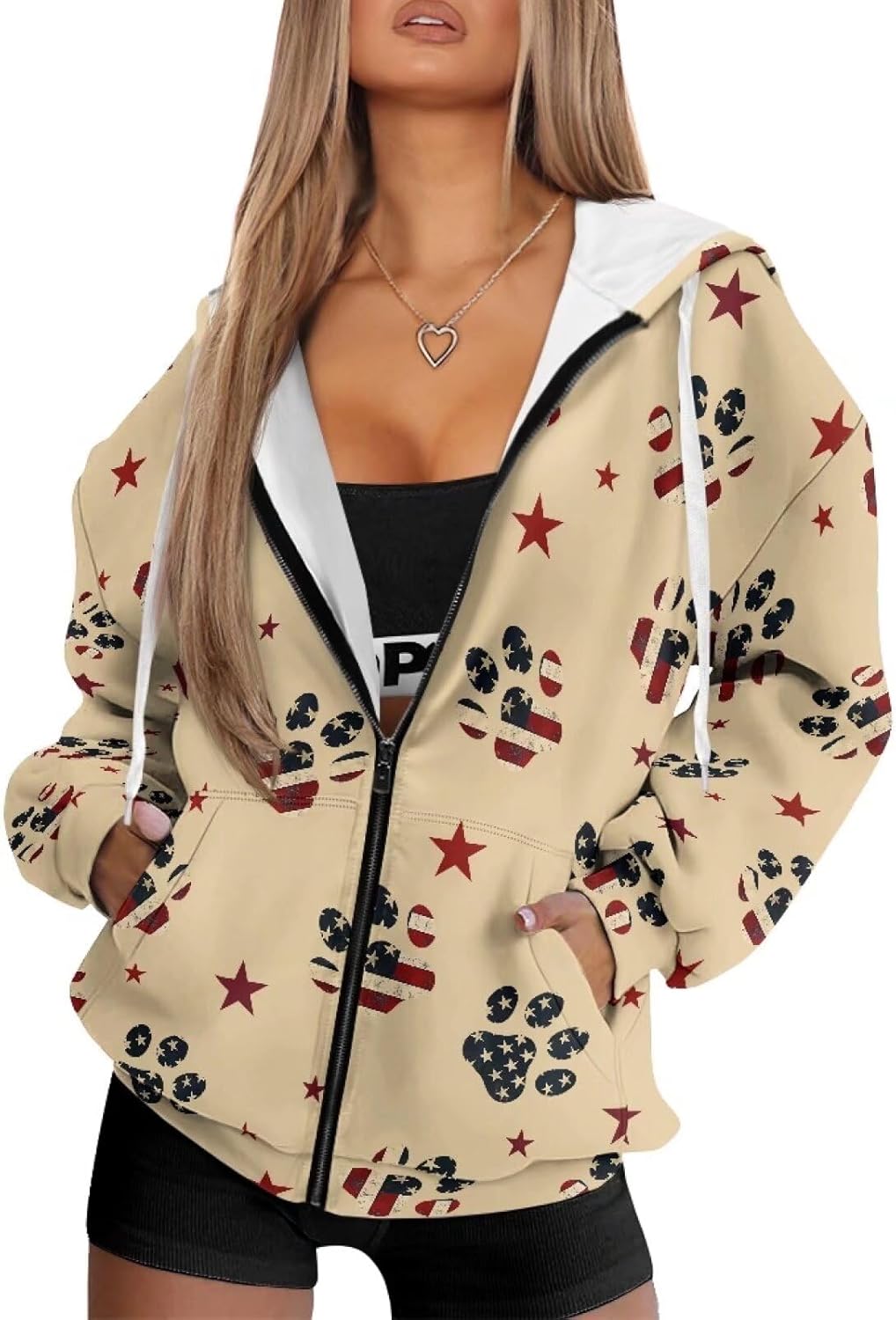 Womens Zip Up Hoodies Long Sleeve Sweatshirts Fall Outfits Oversized Sweaters Casual Fashion Jackets