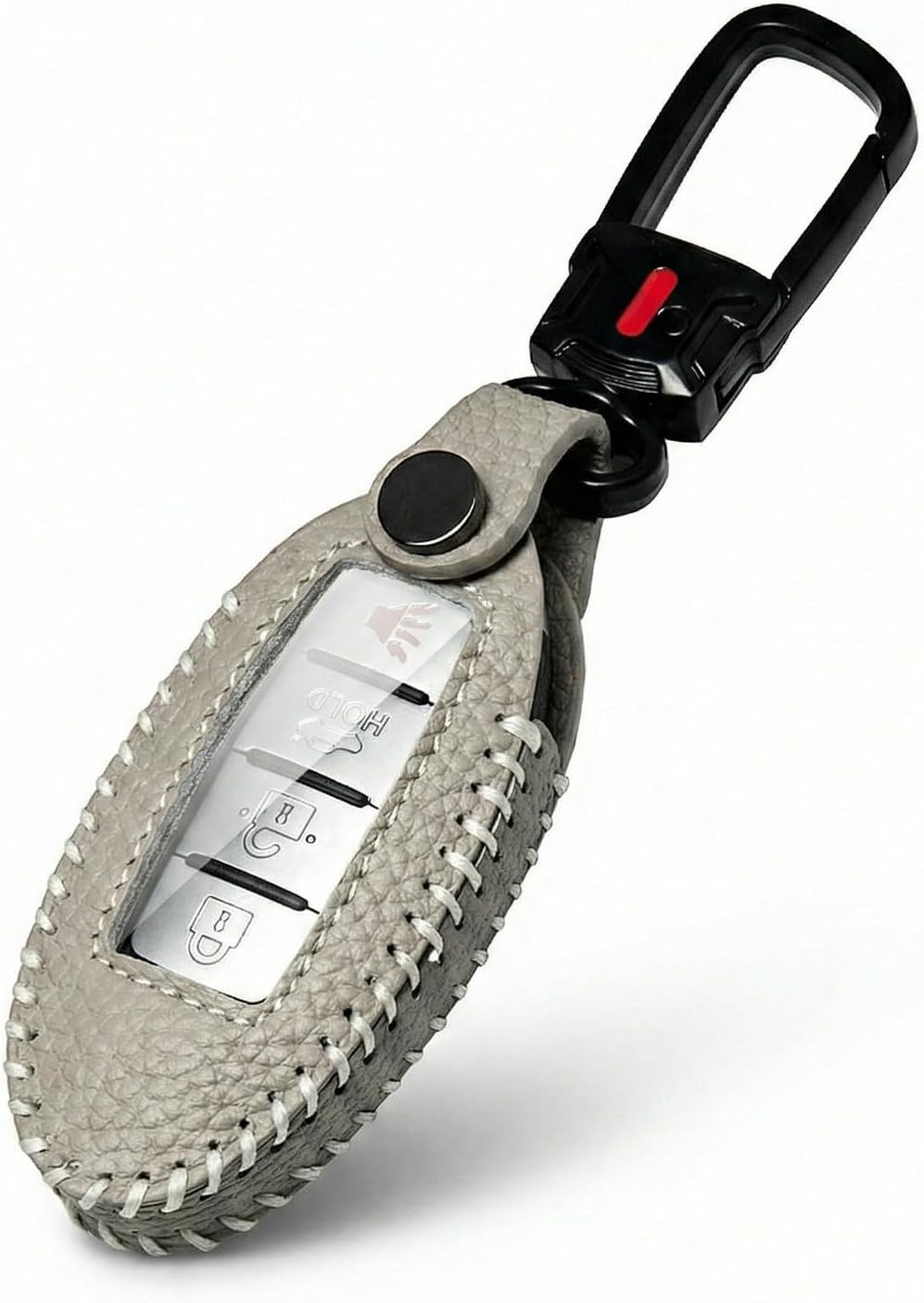 for Nissan Key Fob Cover with Keychain Leather Car Smart Key Case Protector Holder for Nissan Rogue Titan Pathfinder Altima Kicks Murano Frontier Armada Maxima Infiniti (Gray)