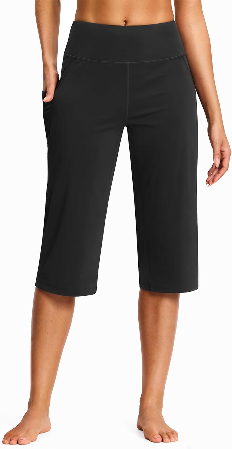 15"/ 18"/ 21" Capri Pants for Women High Waist with Pockets Women's Capris Workout Yoga Pants Loose Straight Leg