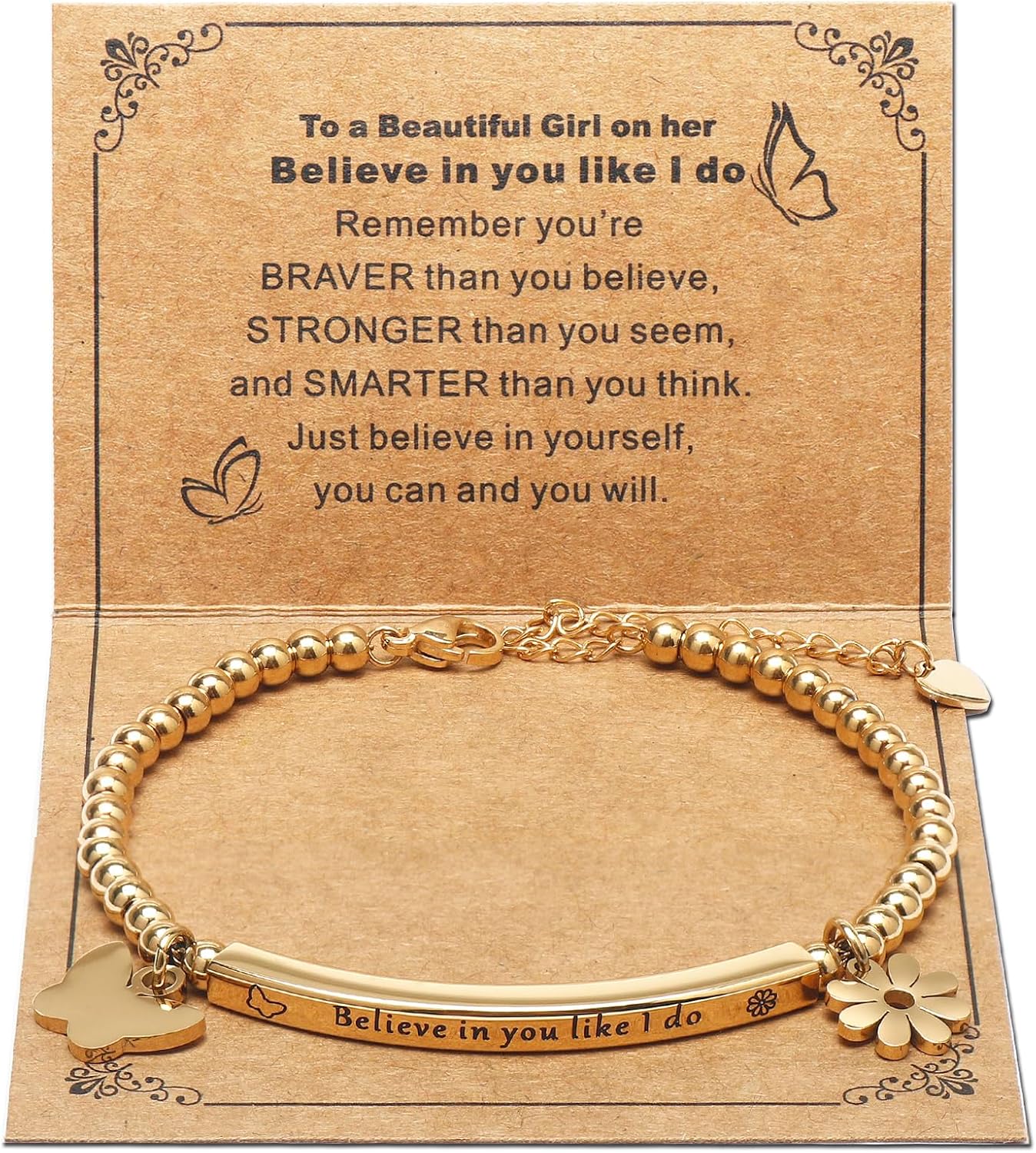 DS Inspirational Bracelet for Women Christian Engraved Bibler Verse Cross Butterfly Daisies Charm Bracelet, Exquisite Stainless Steel Jewelry Daughter Best Friend Bestie