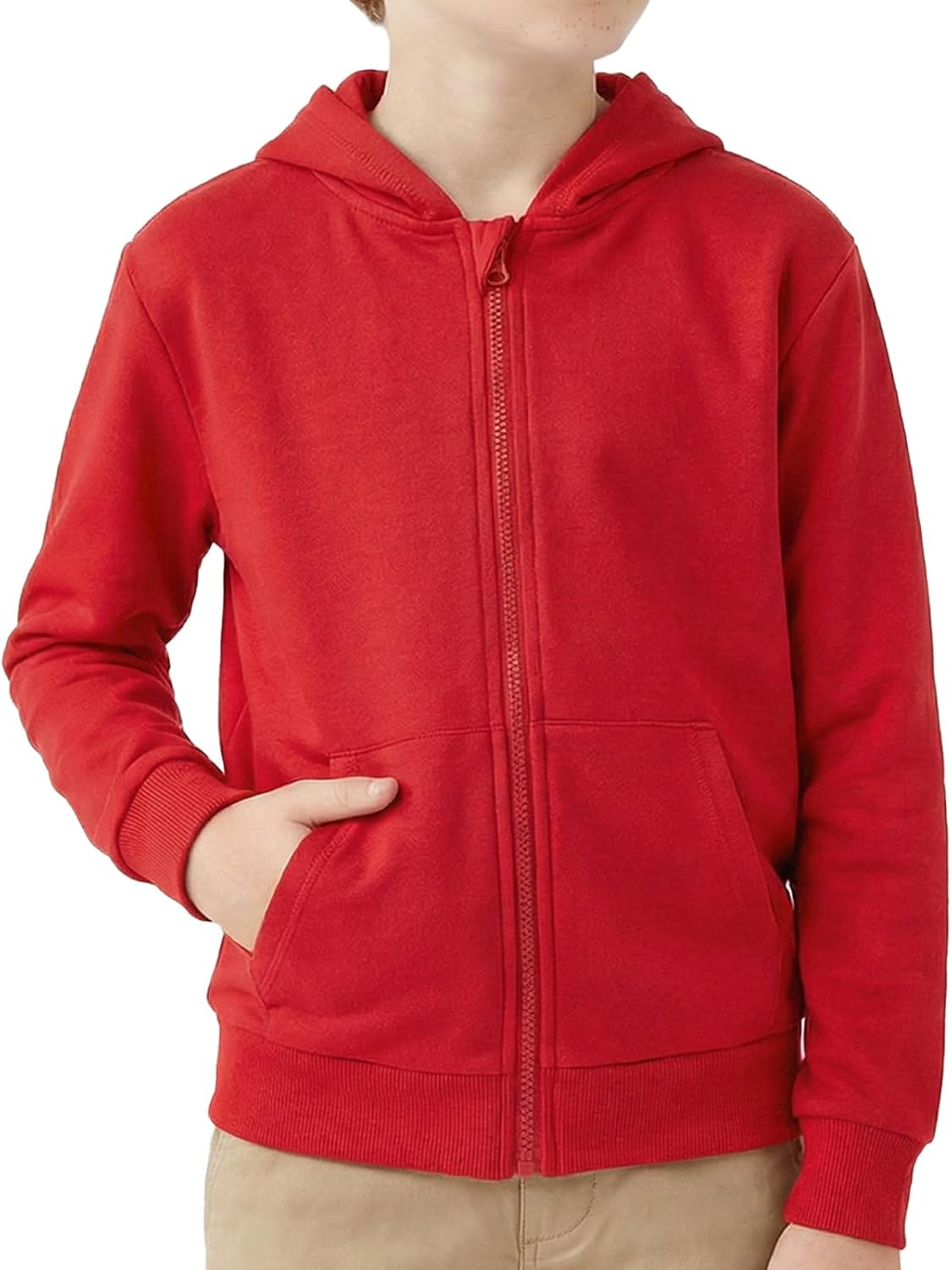 Spring&Gege Boys Zip up Hoodie Soft Solid Classic Full Zip Hooded Sweatshirts for Kids (3-14 Years)