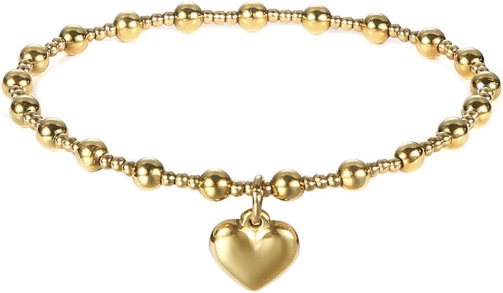 Jude Jewelers Stainless Steel Beaded Chain Heart Charm Wedding Statement Party Bracelet
