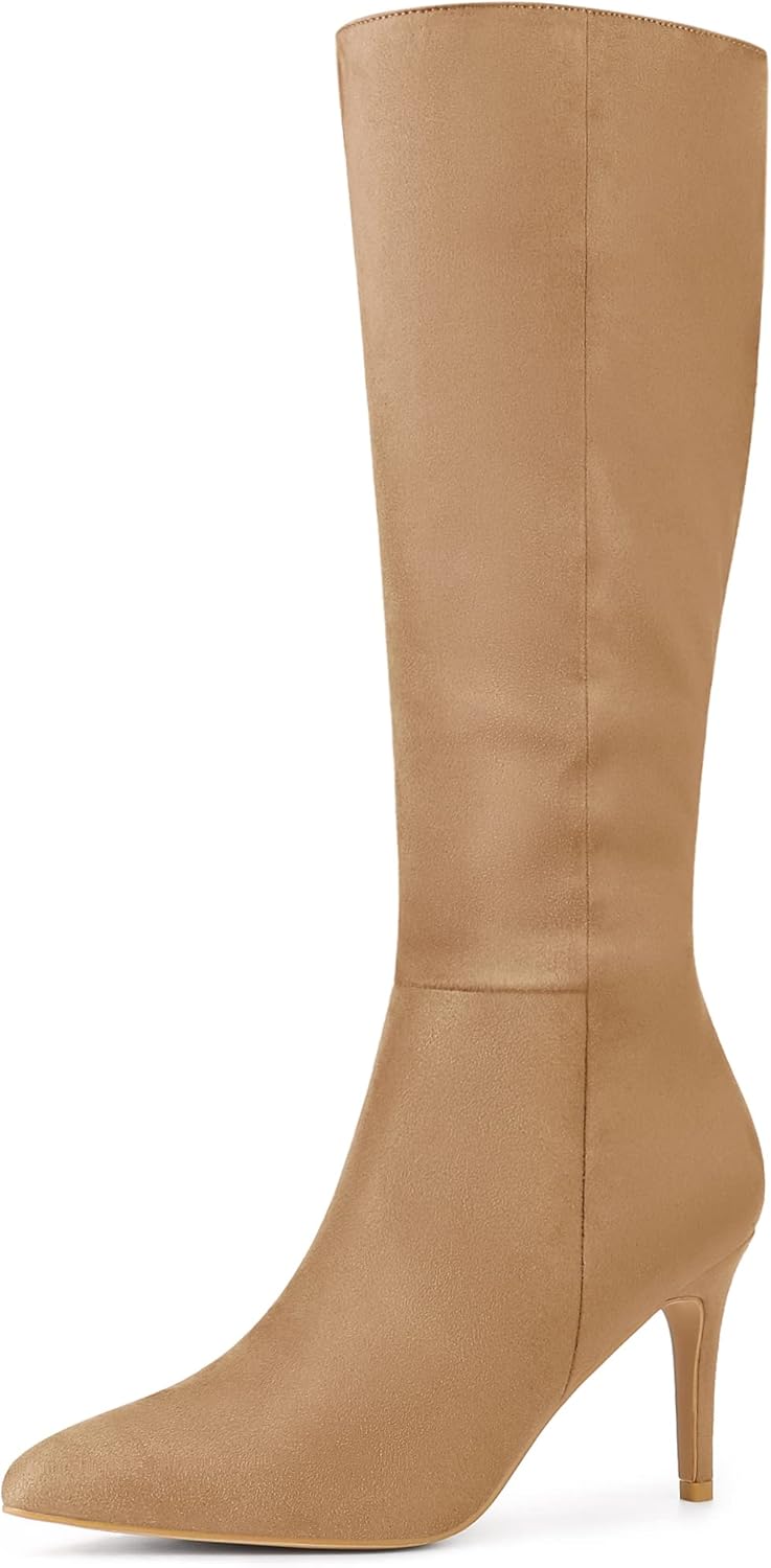 Allegra K Women's Pointed Toe Stiletto Heels Khaki Knee High Boot 8 M US