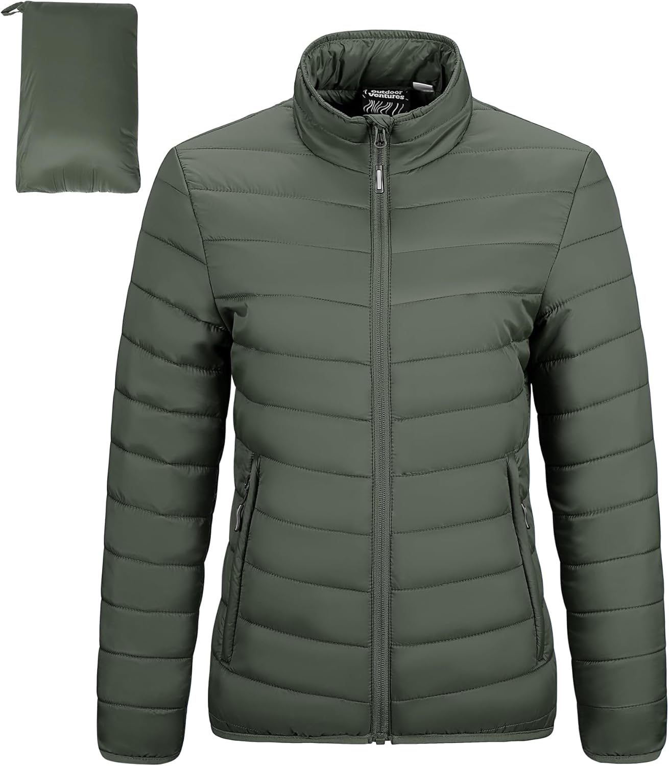Outdoor Ventures Women's Packable Full-Zip Short Puffer Jacket Insulated Quilted Warm Lightweight Winter Coat
