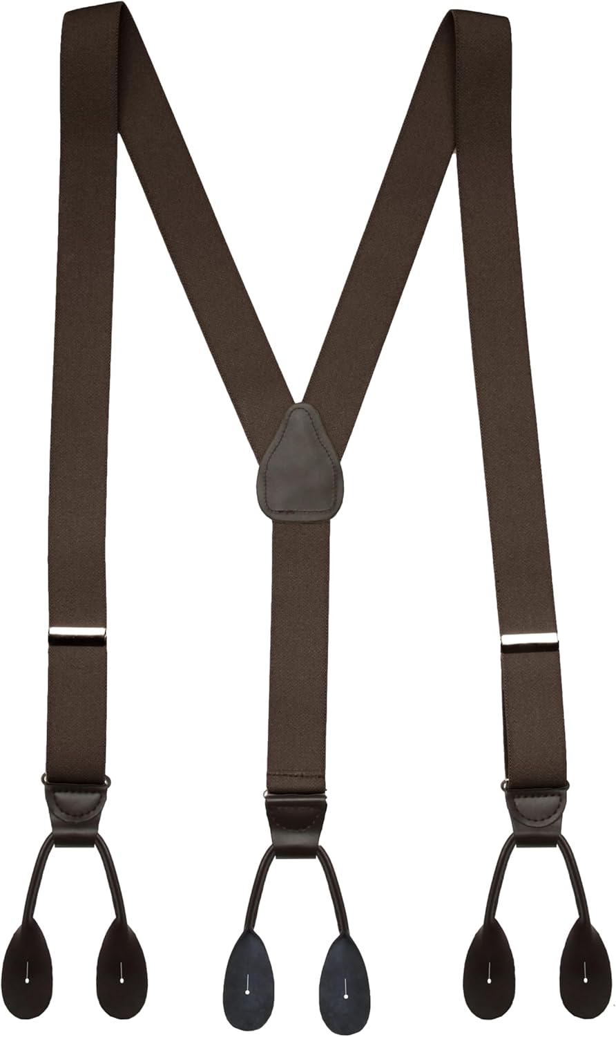HOLD'EM Tuxedo Suspenders for Men Black Genuine Leather Button End 1.25 Inches Mens Braces Suspenders