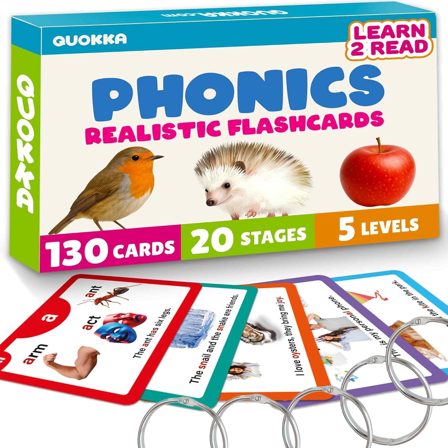 QUOKKA Phonics Flash Cards for Kids Ages 4-8 – 20 Phonic Stages 260 Card Games for Kids Ages 3-5 and 6-8 – Learn to Read Games & Reading Manipulatives for Phonemic Awareness – Alphabet CVC Blends etc