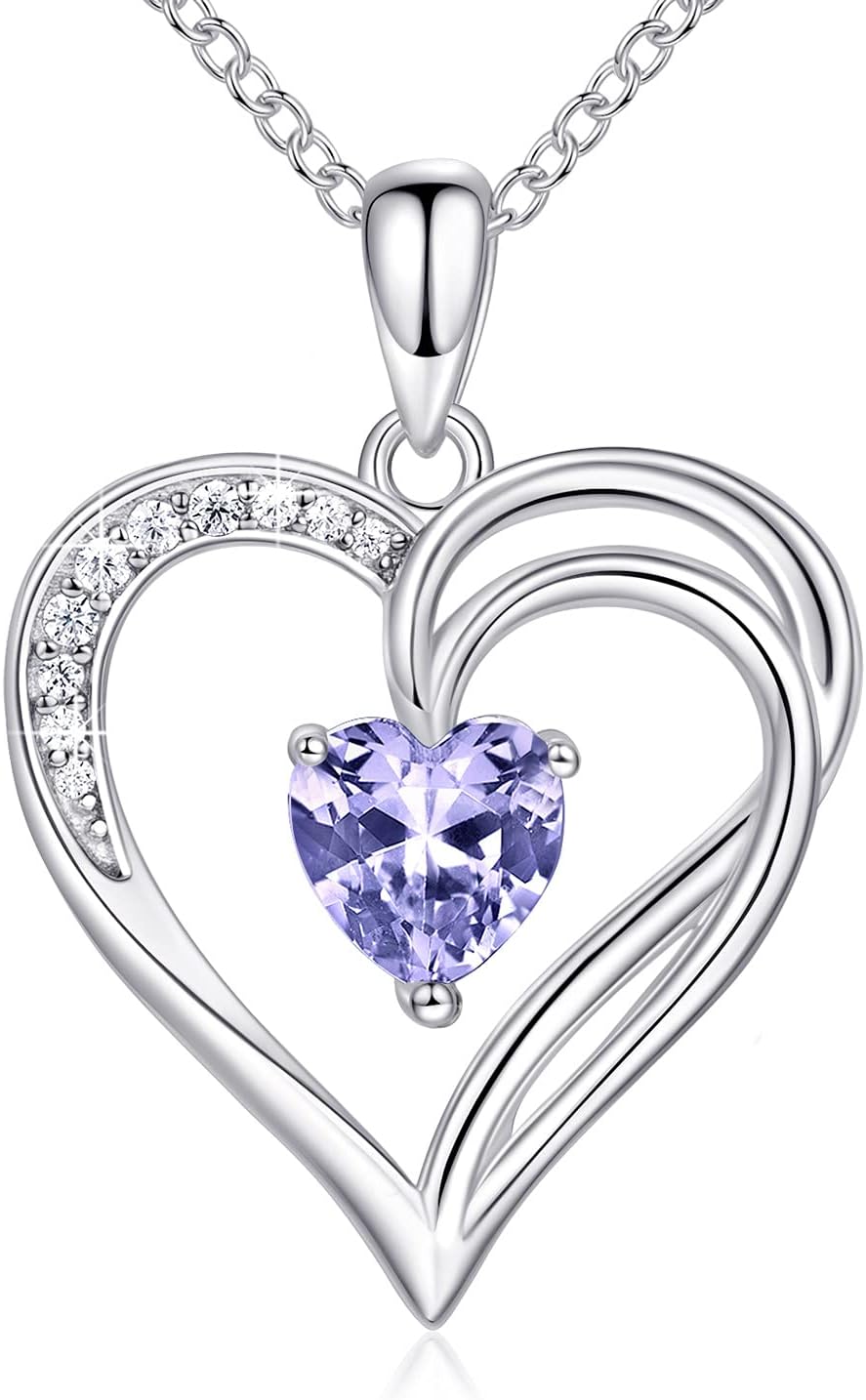 925 Sterling Silver Heart Necklace for Women Birthstone Necklace Silver Jewelry for Womens Jewelry Gifts for Women Her Mom