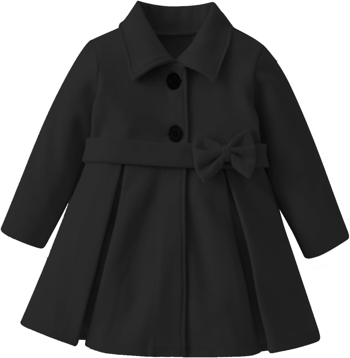 USKIDKK Toddler Baby Girl Coat Long Sleeve Solid Color Buttons Clothes Jacket Little Girls Dress Coat Fall Winter Outfit