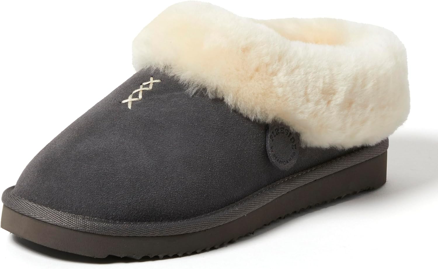 Fireside By Dearfoams Women's Adelaide Slippers, Genuine Shearling Suede Scuff, Memory Foam Slip-in House Shoes