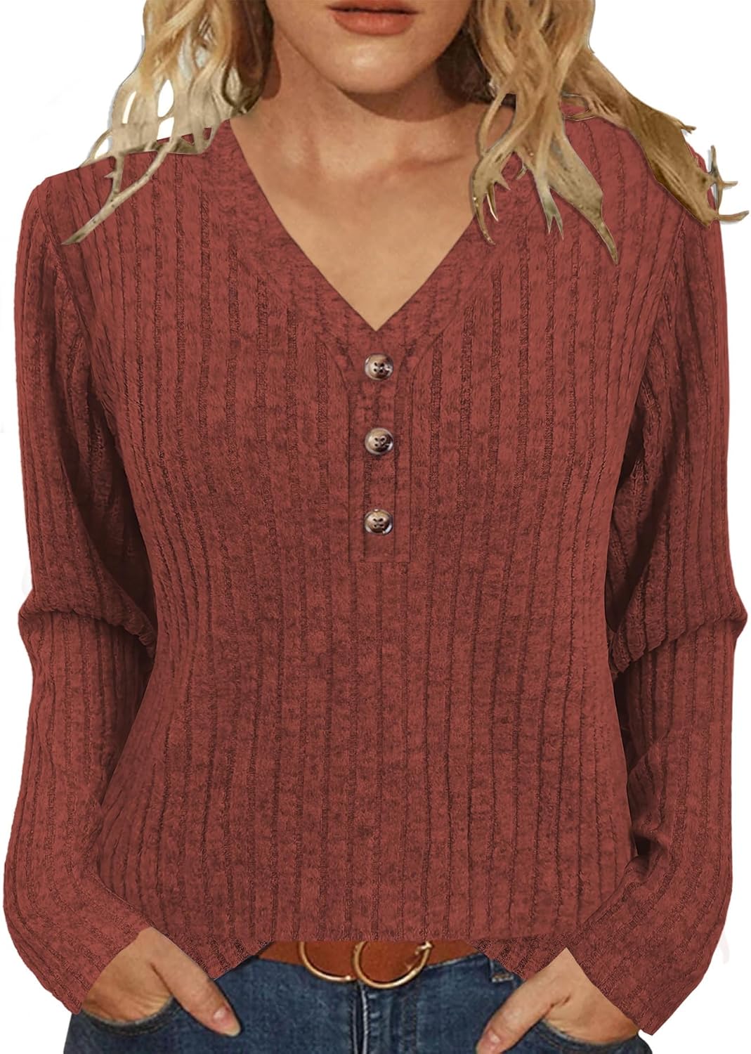 Womens Sweaters Long Sleeve Shirts 2025 Fall Fashion V Neck Sweatshirts Dressy Casual Tunic Tops Winter Clothes