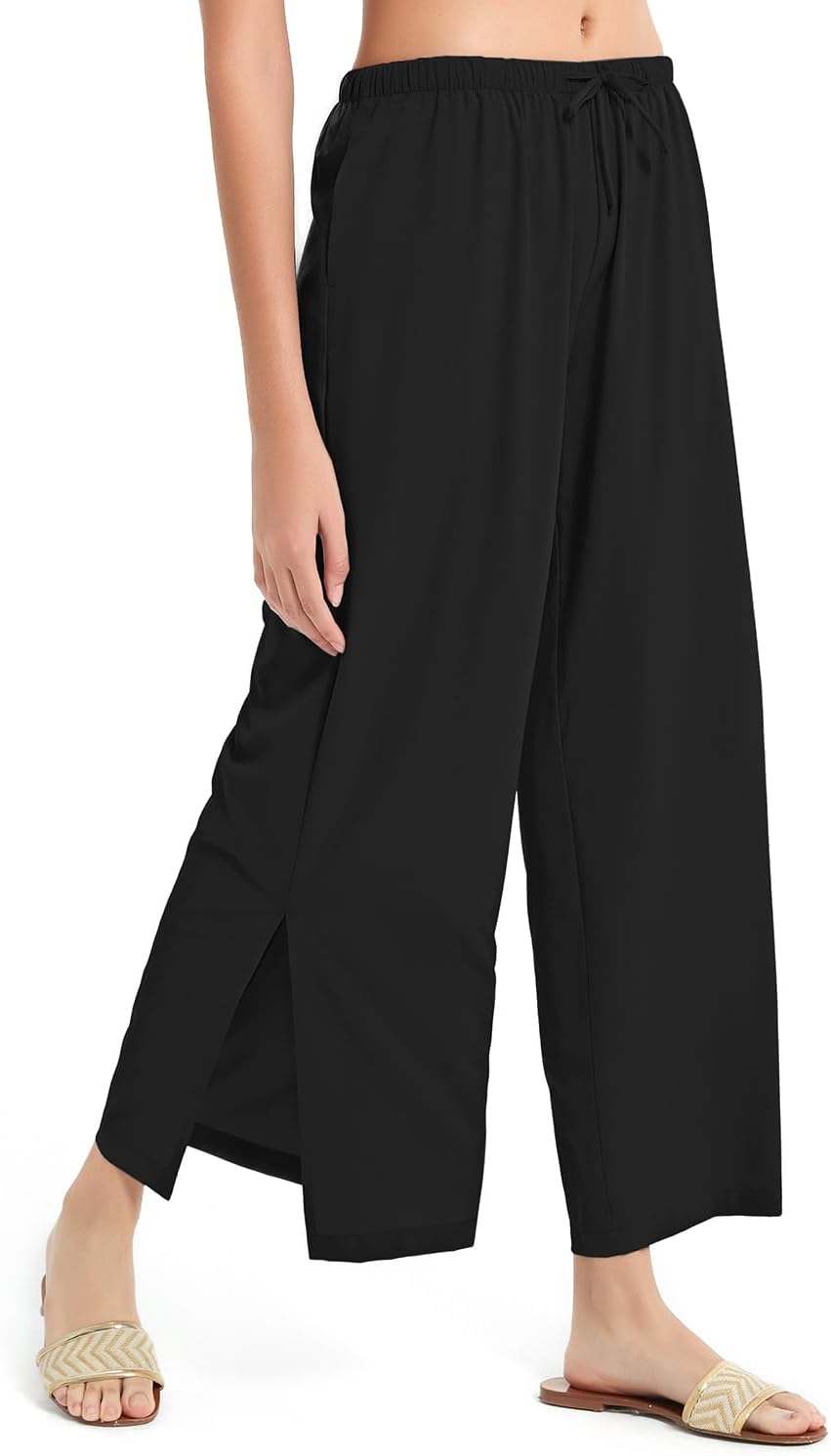 BVVU Womens Wide Leg Yoga Pants Lightweight Travel Pants Quick Dry Lounge Sweatpants Beach Swim Cover Up UPF 50+