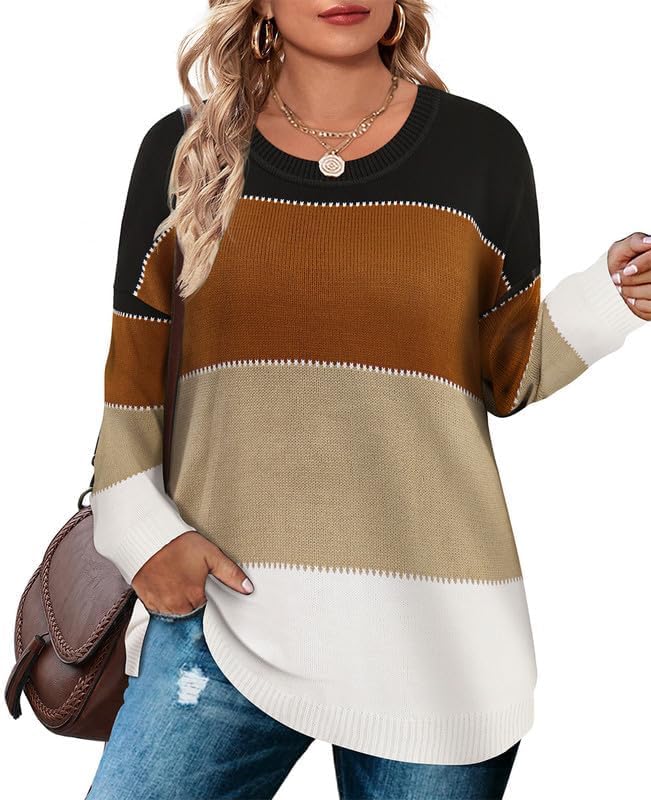 TIYOMI Plus Size Sweaters for Women Sexy Off Shoulder Pullover Crew Neck V Neck Hollow Out Long Sleeve Knitted Tops