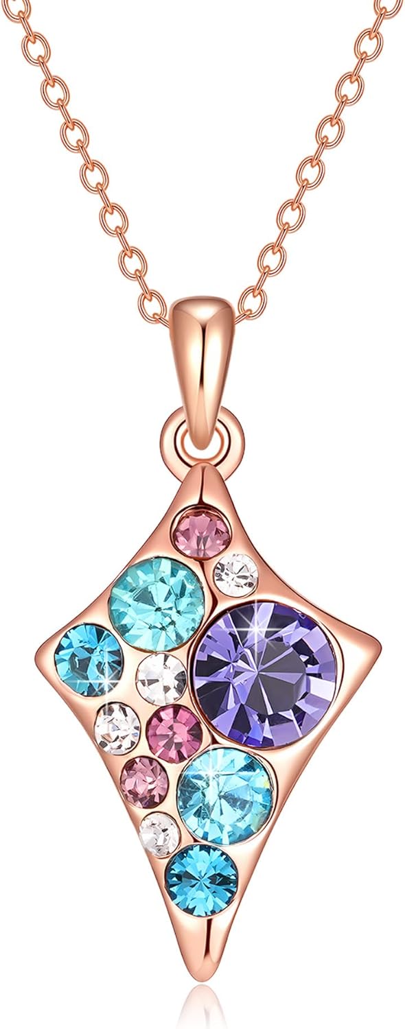 EVEVIC Dainty Multicolored Austrian Crystals Rhombus Pendant Necklaces for Women Fashion 14K Gold Plated Hypoallergenic Jewelry