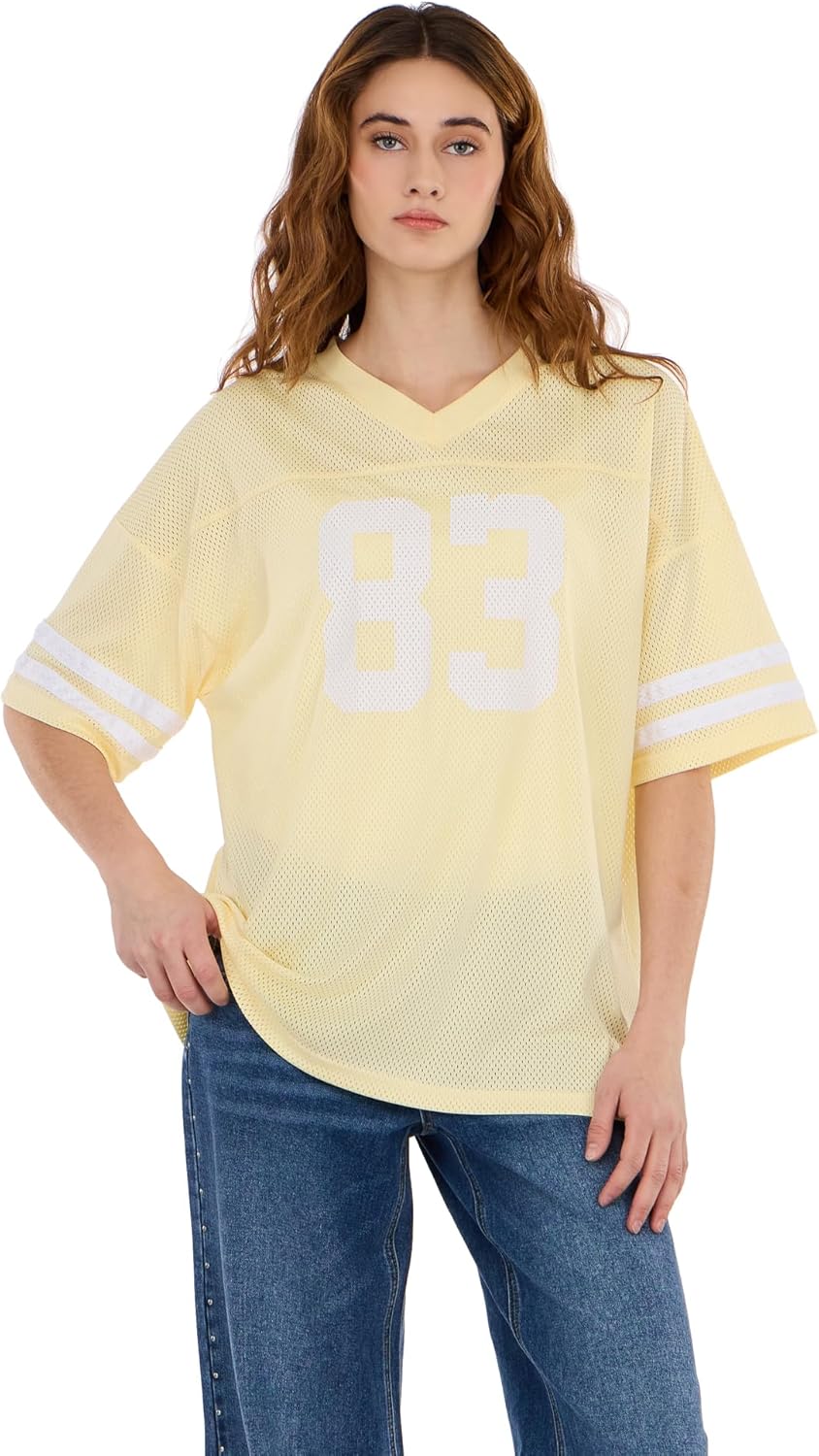 Forever 21 Womens Mesh Oversized Football Tee with Screens