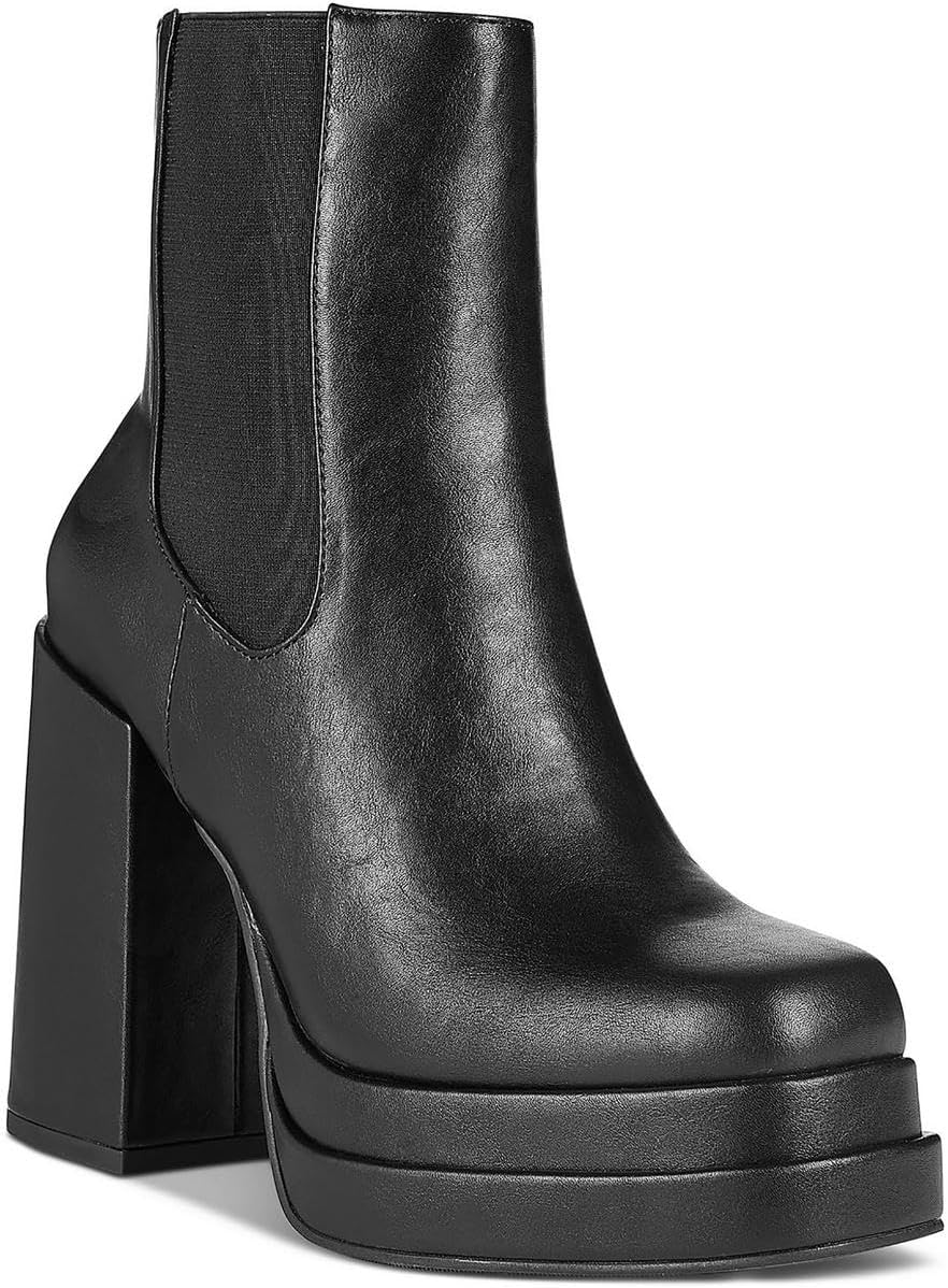 Wild Pair Womens Ohara Faux Leather Chunky Ankle Boots Black 9 Medium (B,M)
