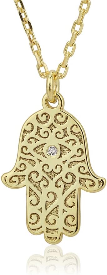 Vanbelle 18K Gold Plated Jewelry - Hamsa Pendant Necklace with Cubic Zirconia Stones - Elegant Handcrafted for Women - 16" Long + 2" Extender