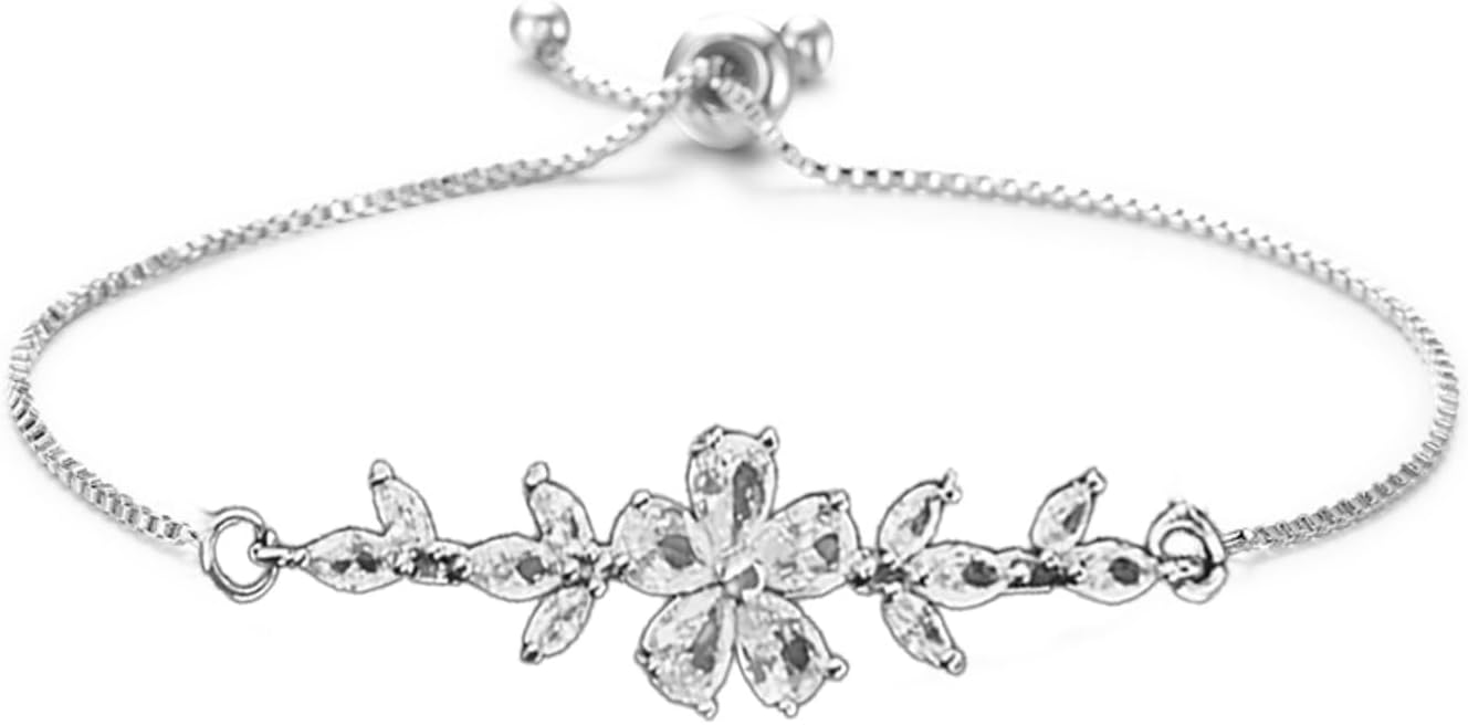 72ore Silver Bracelet for Women Inlaid Zirconia Flower Link Bracelet Elegant Party Wedding Accessories Trendy Gift
