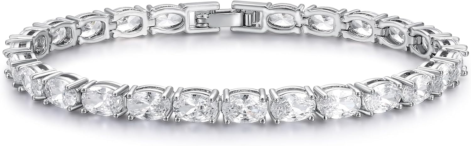 MDFUN Tennis Bracelet for Women,18K White Gold Plated Bracelets, Oval Cubic Zirconia Simulated Diamond 4-6mm Women's Jewelry Gift 6.5 Inch