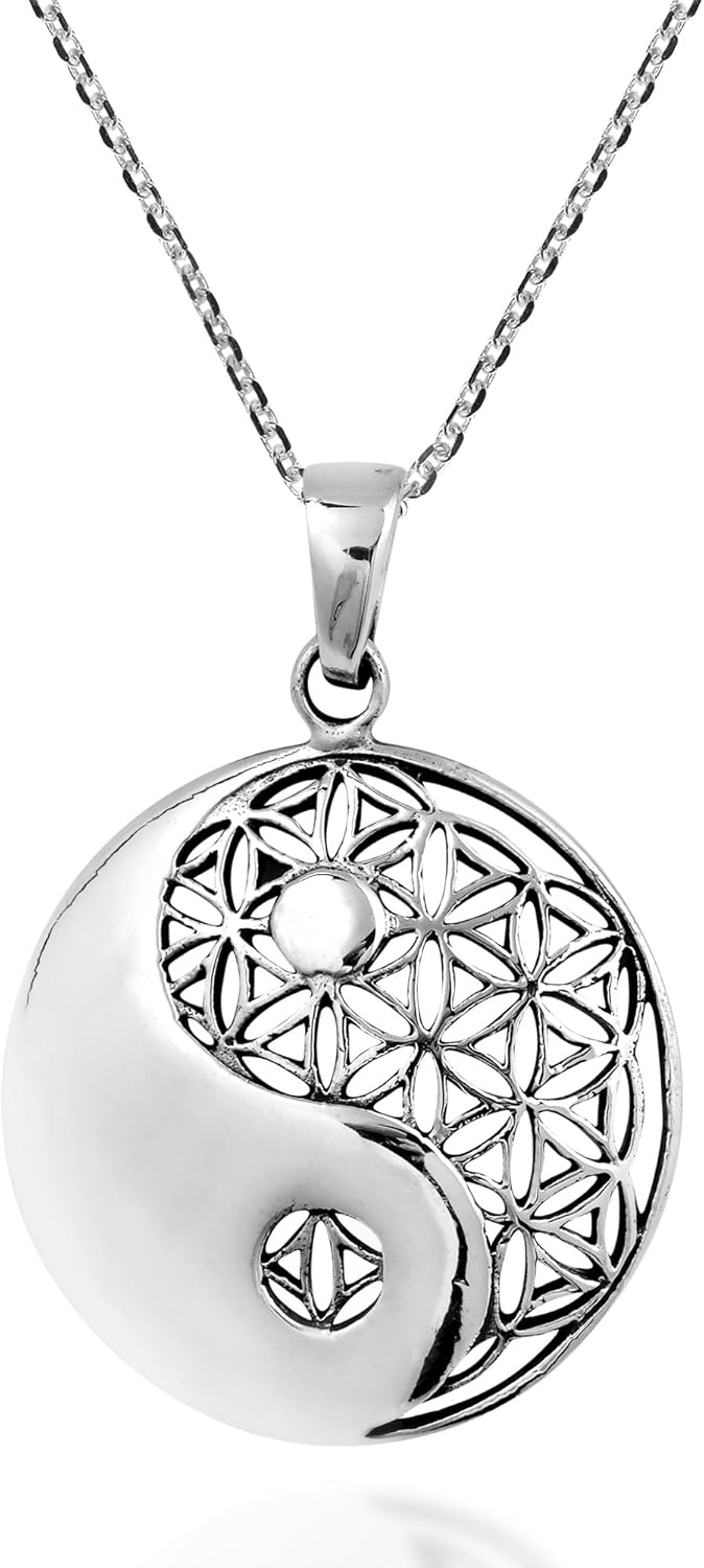 AeraVida Yin Yang Balance Flower of Life .925 Sterling Silver Pendant Necklace | Mystical Sterling Silver Symbolic Jewelry for Men and Women